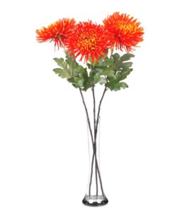Mooie volle chrysant, in de kleur oranje, de bloem is 83 cm hoog. Zo maak je van je zijde boeket een echte eycatcher.