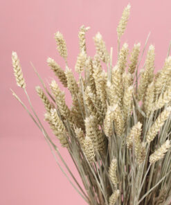 Gedroogde tarwe droogbloemen zijn een van de meest onmisbare droogbloemen die er zijn. Ze passen in elk droogboeket, of dit nou een romantische, warm of koel boeket is: de tarwe past overal tussen. De oppervlakte van de tarwe laat zich heel goed kleuren. Want naast tarwe in naturel kleuren hebben we ze in een grotere verscheidenheid beschikbaar. Bekijk daarom ook eens de andere kleuren en voeg ze toe aan je droogboeket of zet ze zo los op de vaas.