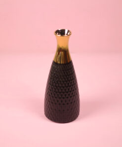 Gele aardewerk vaas met bruine strepen, 40cm. Stoere vaas waar je zijde of droogbloemen boeket schitterend in uitkomt.