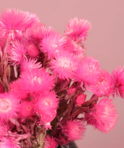 Fel gekleurd boeketje droogbloemen van Kaapse Bloemen. Het boeket is ongeveer 40 centimeter hoog en komt in de kleur roze.
