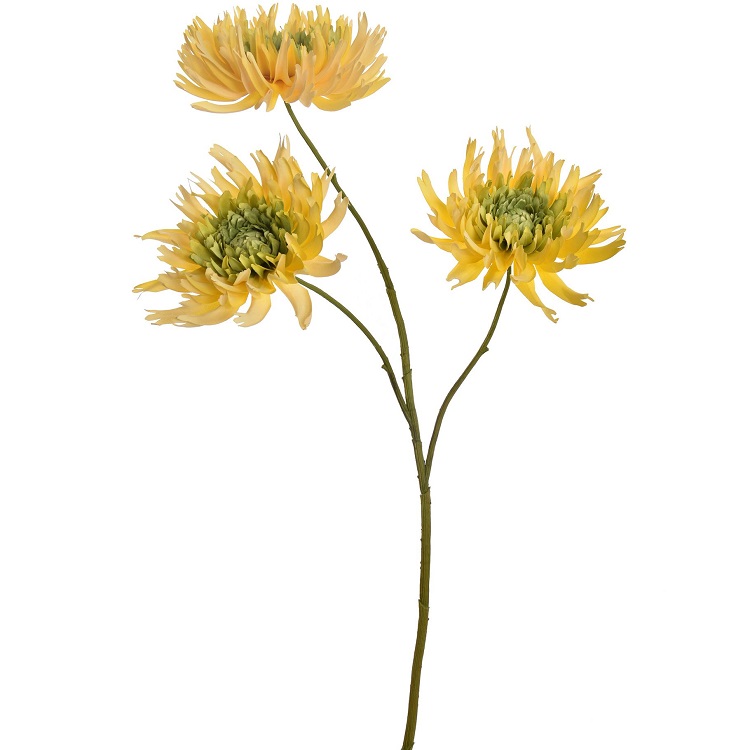 Prachtige Chrysant met 3 grote mooie open bloemen. Deze Chrysant is ongeveer 80cm hoog en een echte eye-catcher in je zijden boeket! Fleurig en kleurrijk!