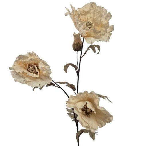 Prachtige creme kleurige Poppy (Klaproos) van ca. 110cm lang. Deze klaproos heeft 4 bloemknoppen en is geschikt voor jouw zelf samengestelde zijdenboeket!