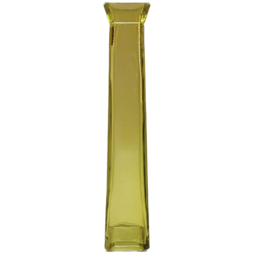 Transparant vierkant glazen vaasje, roze, 28cm hoog. Hoe leuk om deze alleen neer te zetten met droogbloemen erin of in een groep met de andere kleuren.