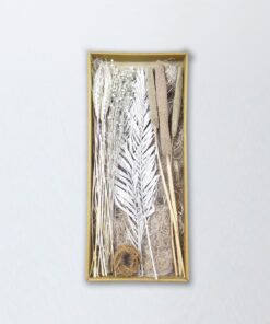 Tussen onze standaard kleine droogboeketten vindt u ook een aantal doosjes. In deze doosjes zitten een aantal droogbloemen waardoor je zelf een klein droogboeket kunt samenstelling. Je kunt je fantasie de vrije loop laten gaan, want er is geen foute manier om een boeketje te samenstellen. Maak dus het doosje open, kijk welke verschillende droogbloemen hier in zitten en ga lekker aan de slag. Op de foto’s vind je een voordeel van hoe wij het boeket hebben samengesteld, maar laat je hier vooral niet door leiden!